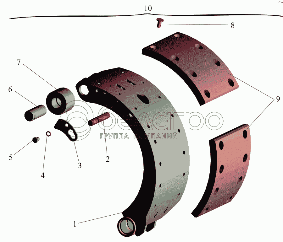 Каталог запасных частей к технике: МАЗ-642505, 642508. Мост передний. Колодка тормозная