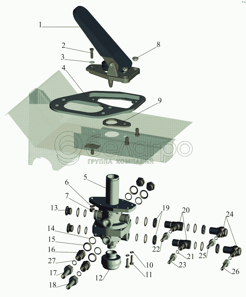Каталог запасных частей к технике: МАЗ-642505, 642508. Тормозной кран с присоединительной арматурой