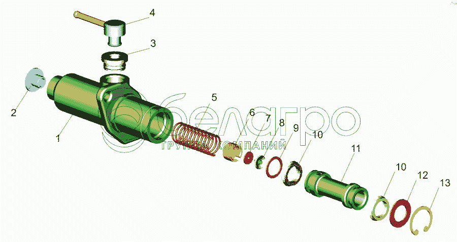 Каталог запасных частей к технике: МАЗ-642505, 642508. Цилиндр подпедальный 6430-1602510