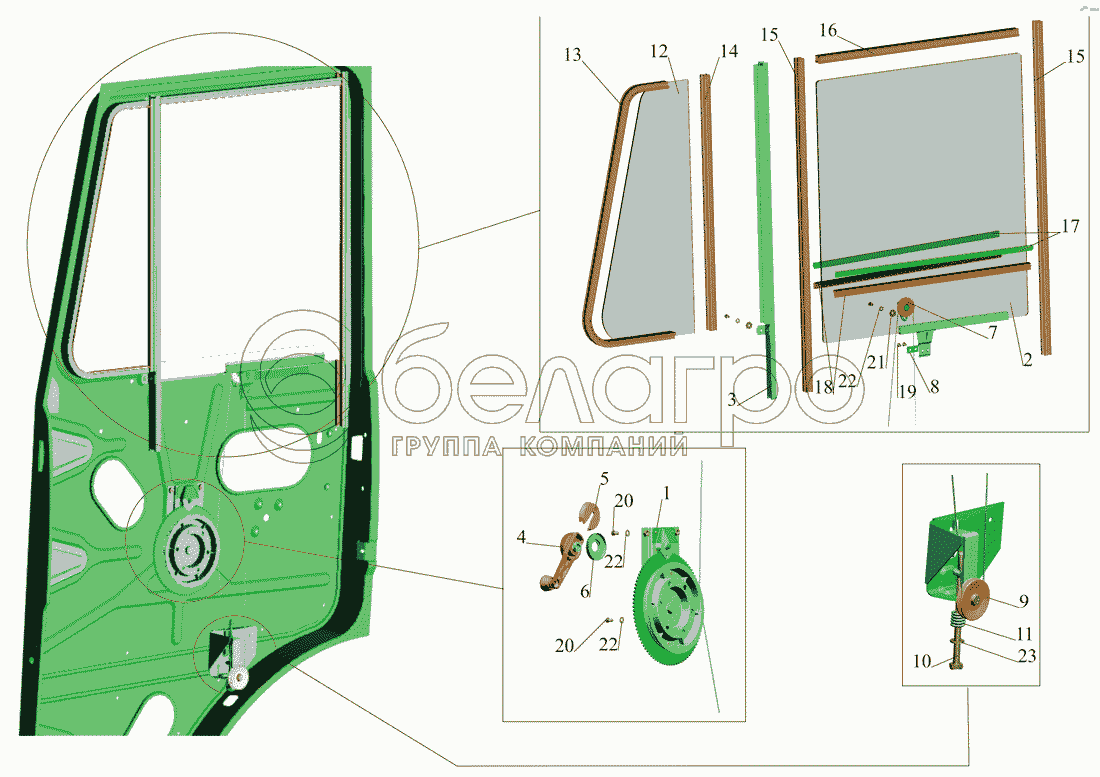 Каталог запасных частей к технике: МАЗ-642505, 642508. Установка стеклоподъемника и ручки стеклоподъемника
