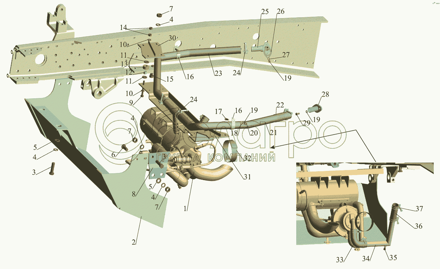Каталог запасных частей к технике: МАЗ-642505, 642508. Установка подогревателя 641708-1015001