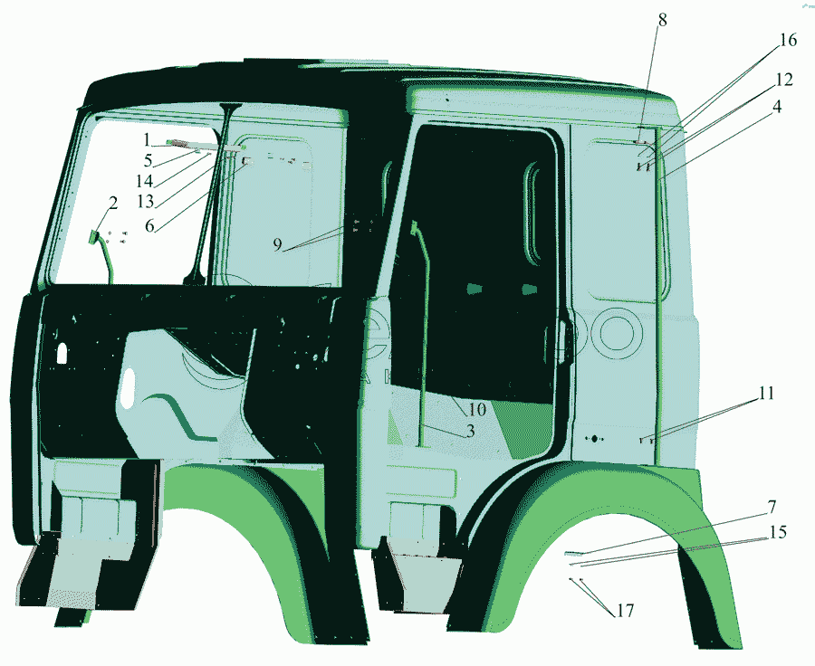Каталог запасных частей к технике: МАЗ-642505, 642508. Установка поручней в кабине