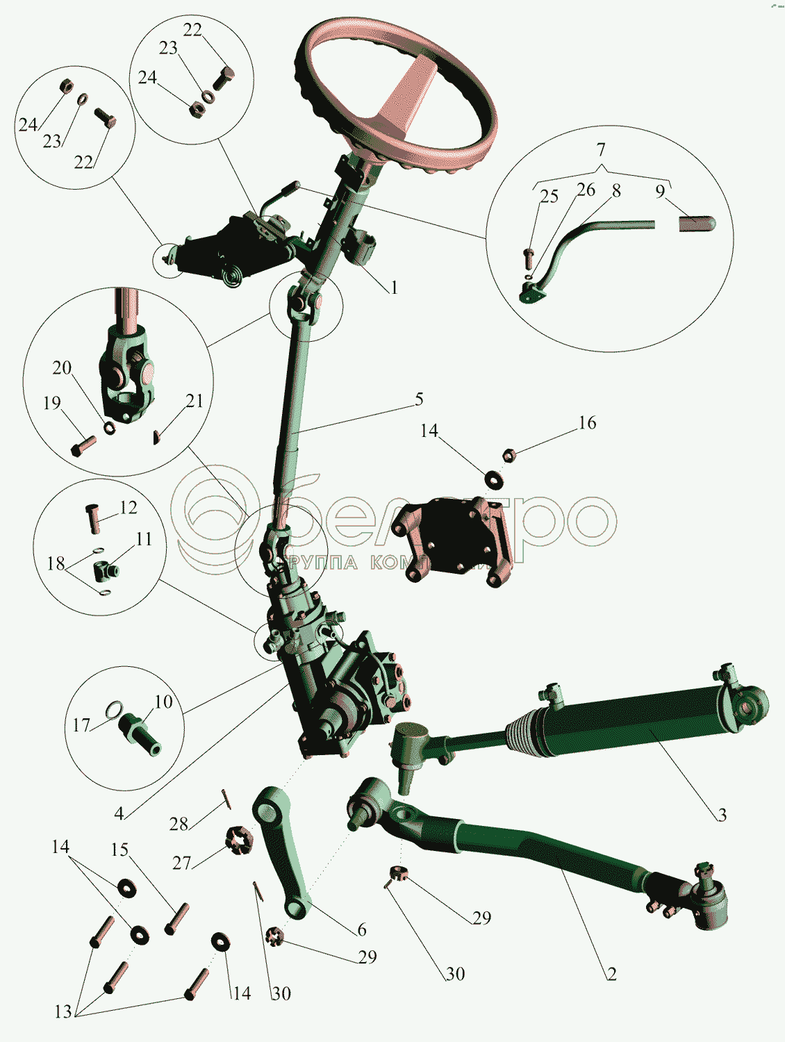 Каталог запасных частей к технике: МАЗ-642505, 642508. Установка рулевой колонки и рулевого механизма