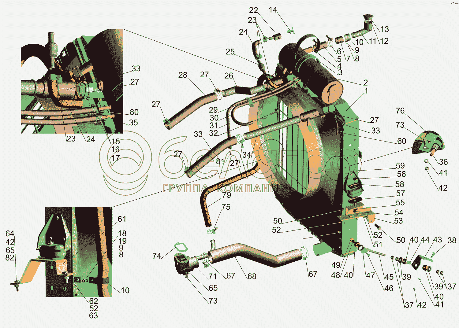 Каталог запасных частей к технике: МАЗ-642505, 642508. Установка системы охлаждения 641708-1300005-010