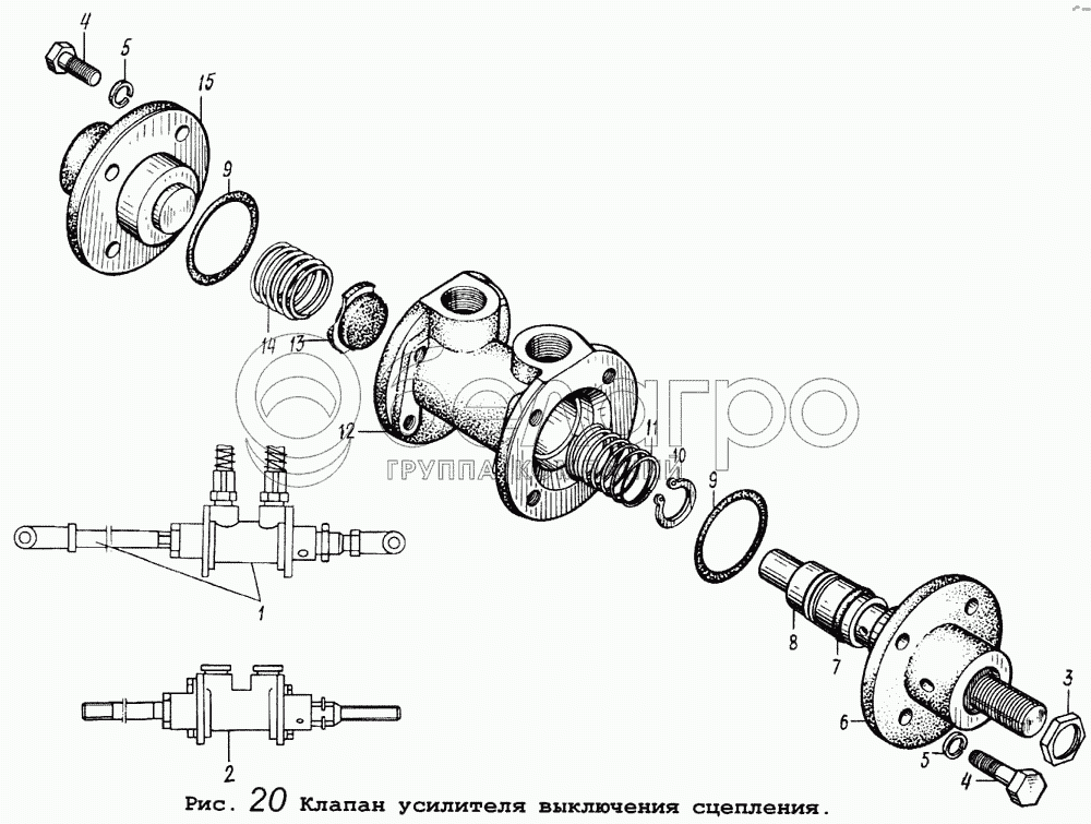 Каталог запасных частей к технике: МАЗ-64255. Клапан усилителя выключения сцепления