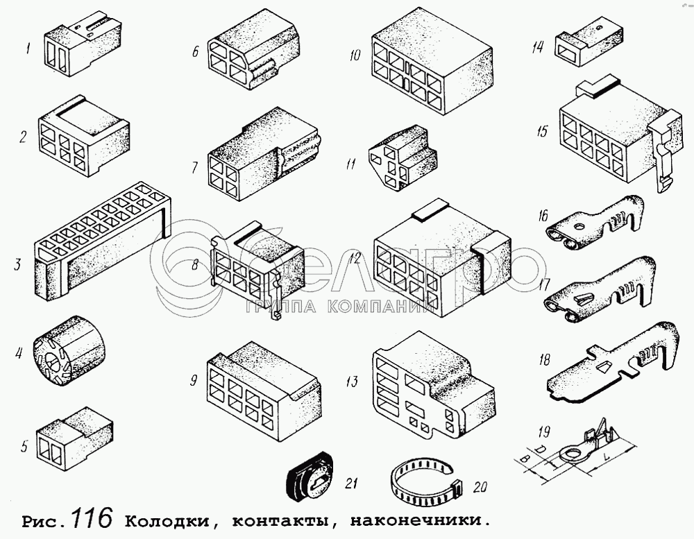 Каталог запасных частей к технике: МАЗ-64255. Колодки, контакты, наконечники