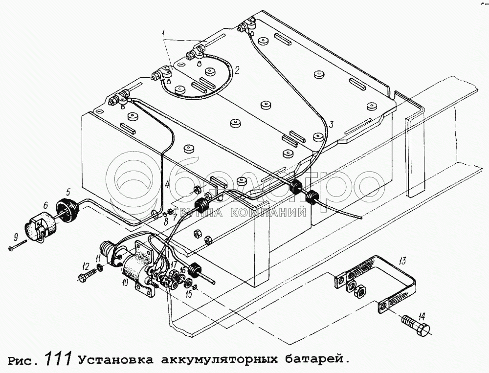 Каталог запасных частей к технике: МАЗ-64255. Крепление аккумуляторного ящика