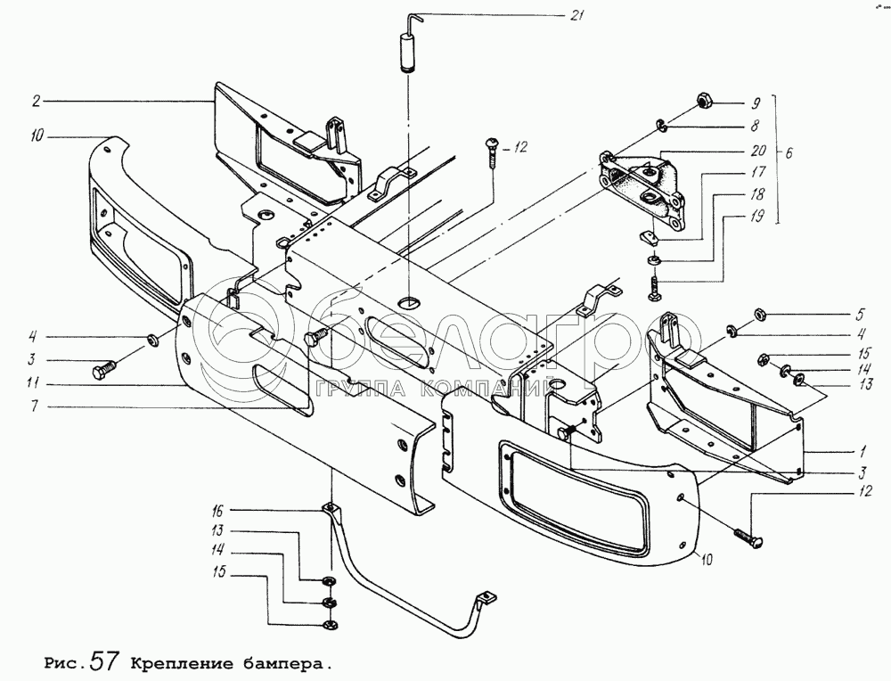 Каталог запасных частей к технике: МАЗ-64255. Крепление бампера