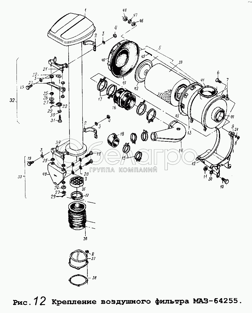 Каталог запасных частей к технике: МАЗ-64255. Крепление воздушного фильтра МАЗ-64255