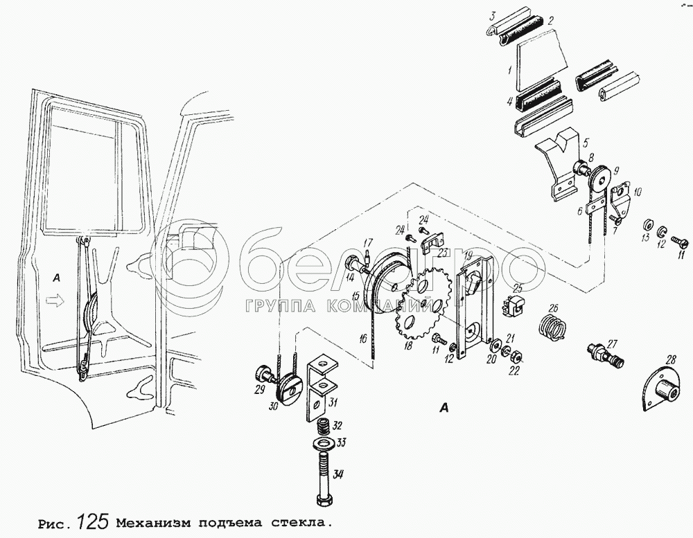 Каталог запасных частей к технике: МАЗ-64255. Механизм подъема стекла