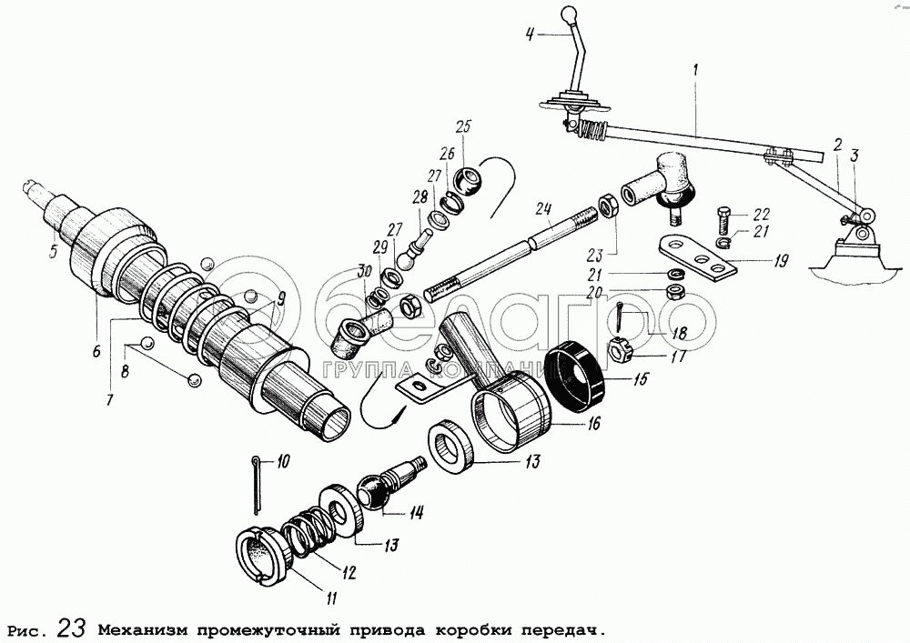 Каталог запасных частей к технике: МАЗ-64255. Механизм промежуточный привода коробки передач