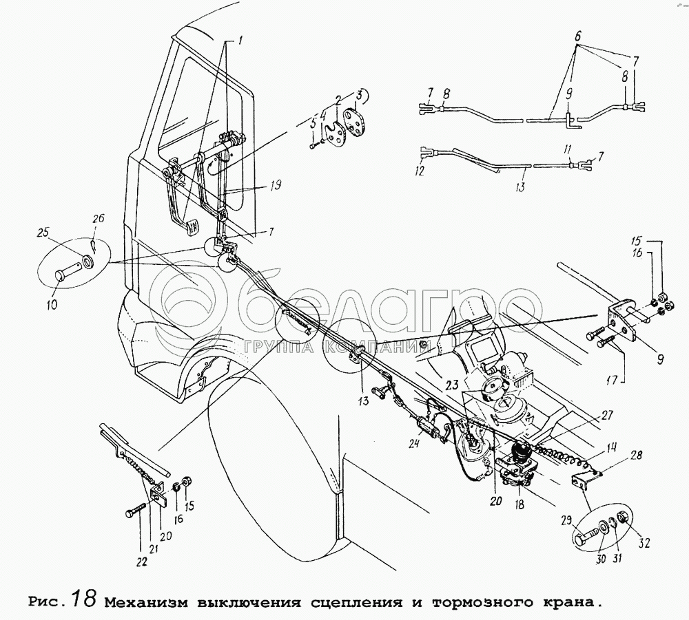 Каталог запасных частей к технике: МАЗ-64255. Механизм выключения сцепления и тормозного крана