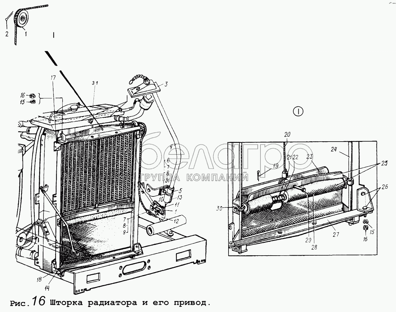 Каталог запасных частей к технике: МАЗ-64255. Шторка радиатора и его привод