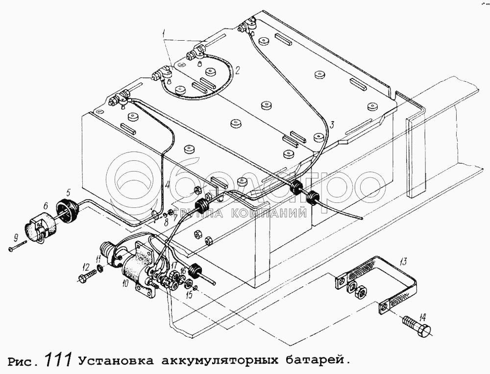 Каталог запасных частей к технике: МАЗ-64255. Установка аккумуляторных батарей