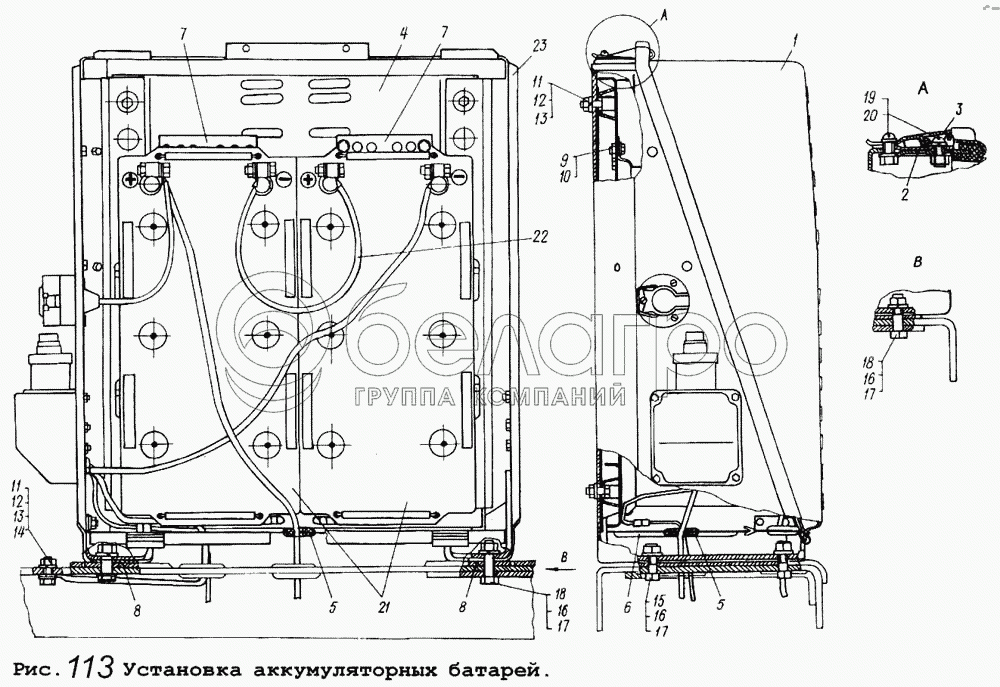 Каталог запасных частей к технике: МАЗ-64255. Установка аккумуляторных батарей