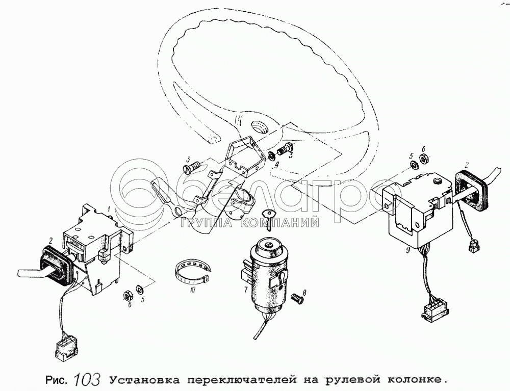Каталог запасных частей к технике: МАЗ-64255. Установка переключателей на рулевой колонке