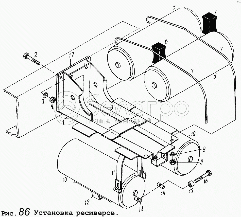 Каталог запасных частей к технике: МАЗ-64255. Установка ресиверов
