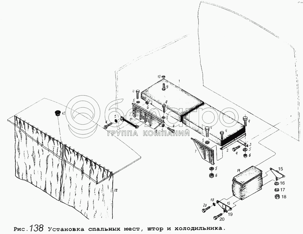 Каталог запасных частей к технике: МАЗ-64255. Установка спальных мест, штор и холодильника