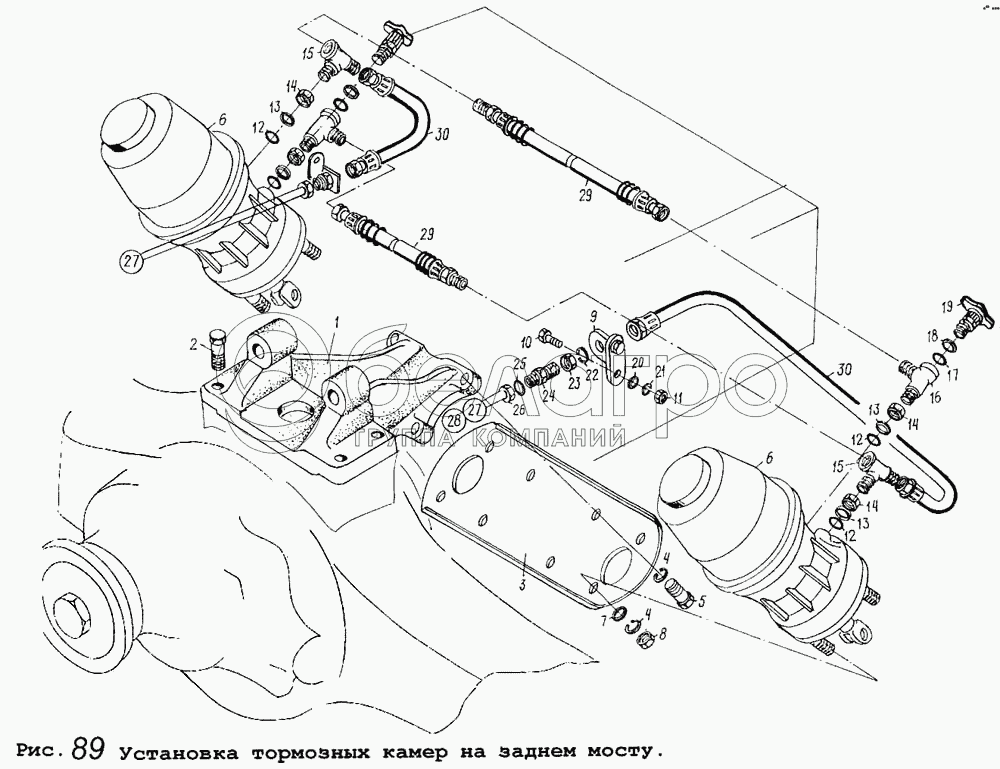 Каталог запасных частей к технике: МАЗ-64255. Установка тормозных камер на заднем мосту
