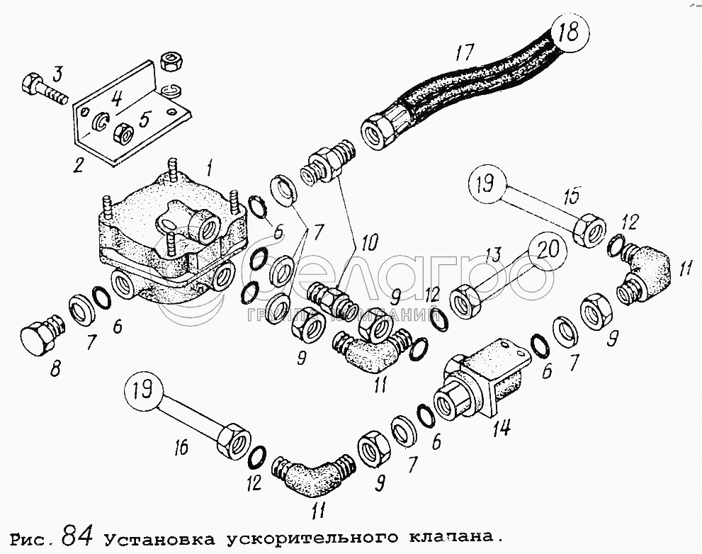 Каталог запасных частей к технике: МАЗ-64255. Установка ускорительного клапана