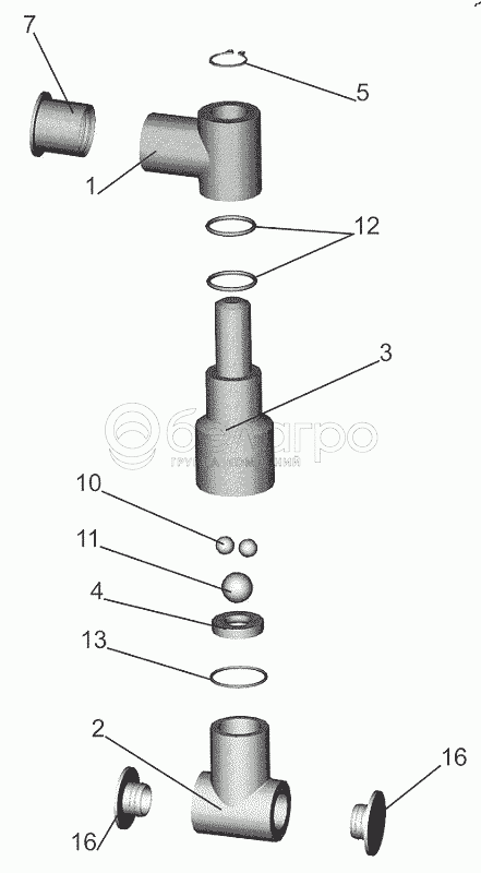 Каталог запасных частей к технике: МАЗ-643018. Клапан обратный с арматурой 551639-8609238
