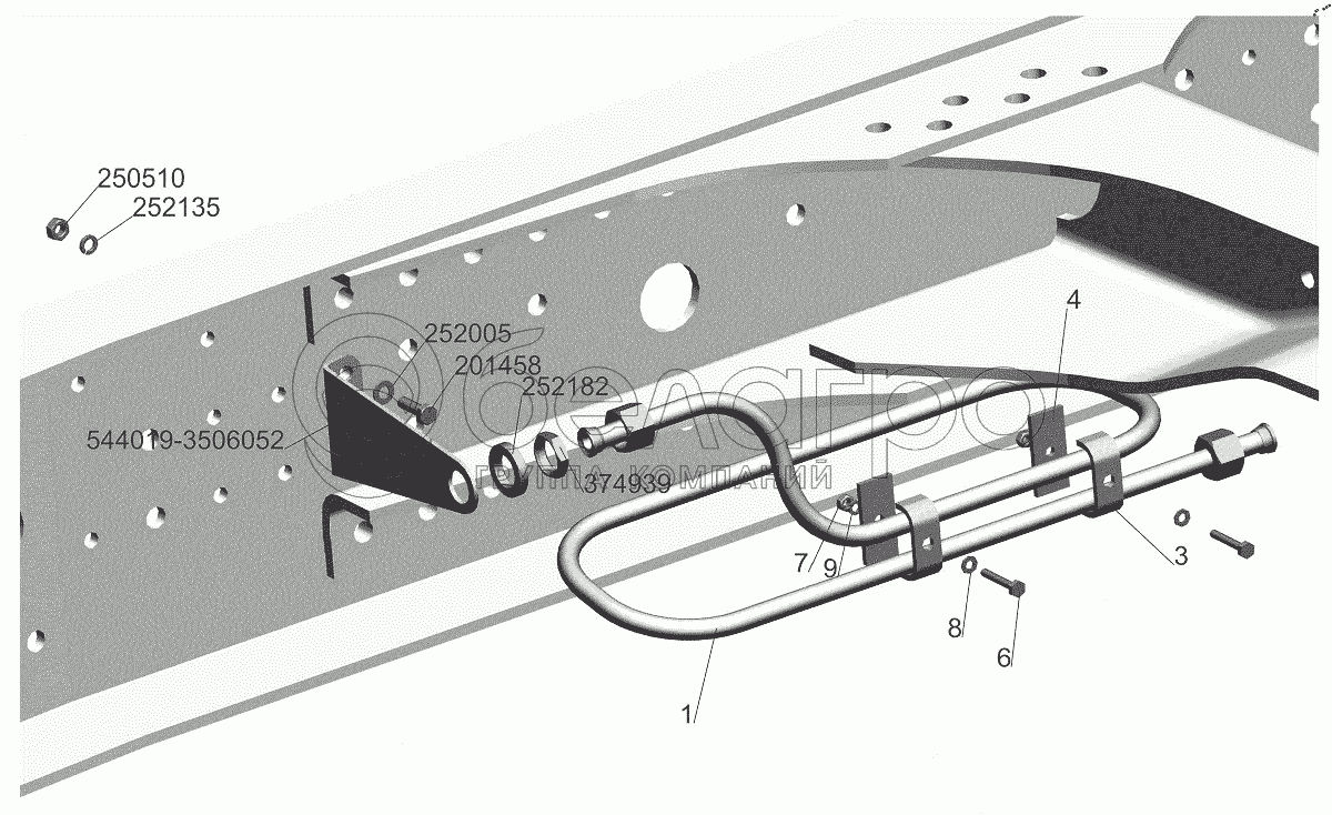 Каталог запасных частей к технике: МАЗ-643018. Крепление охладителя 544019-3506020