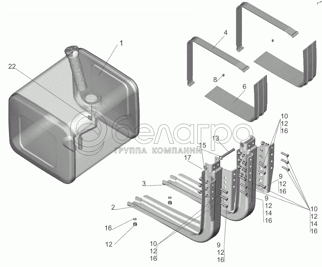 Каталог запасных частей к технике: МАЗ-643018. Крепление топливного бака 643018-1101002-000