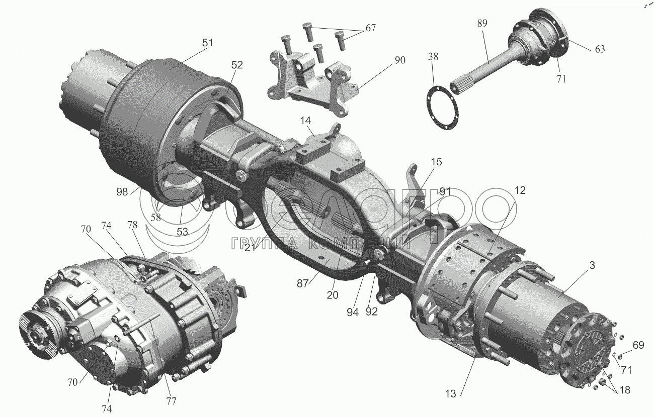 Каталог запасных частей к технике: МАЗ-643018. Мост средний
