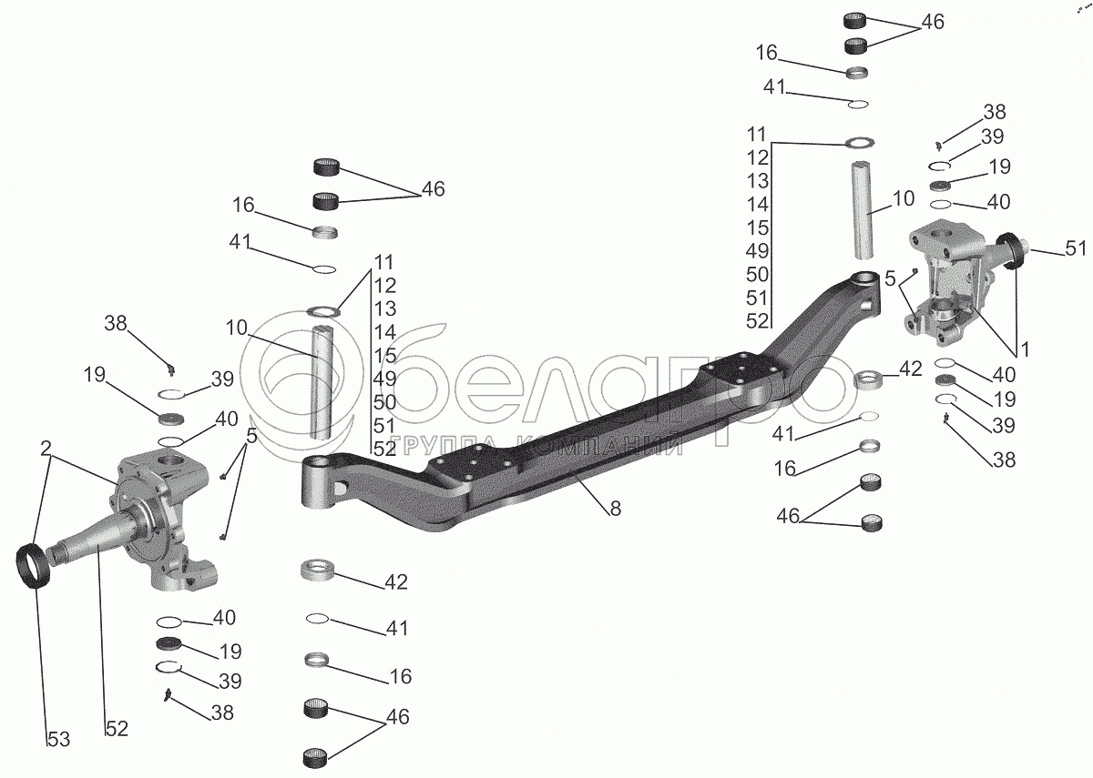 Каталог запасных частей к технике: МАЗ-643018. Передняя ось 544019-3000015