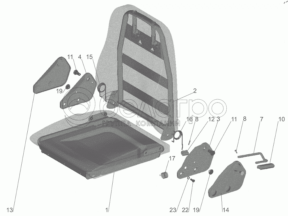 Каталог запасных частей к технике: МАЗ-643018. Подушка и спинка сидения 6430-6800012