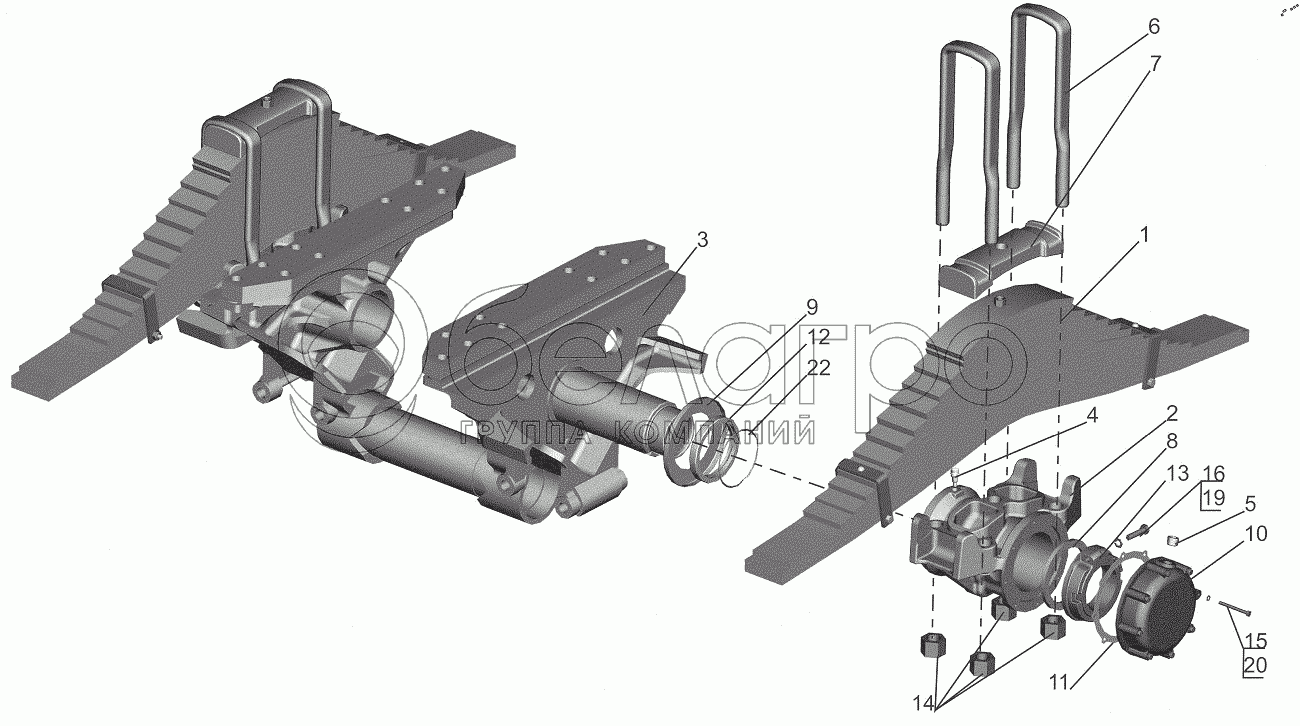 Каталог запасных частей к технике: МАЗ-643018. Подвеска балансирная 643018-2900012