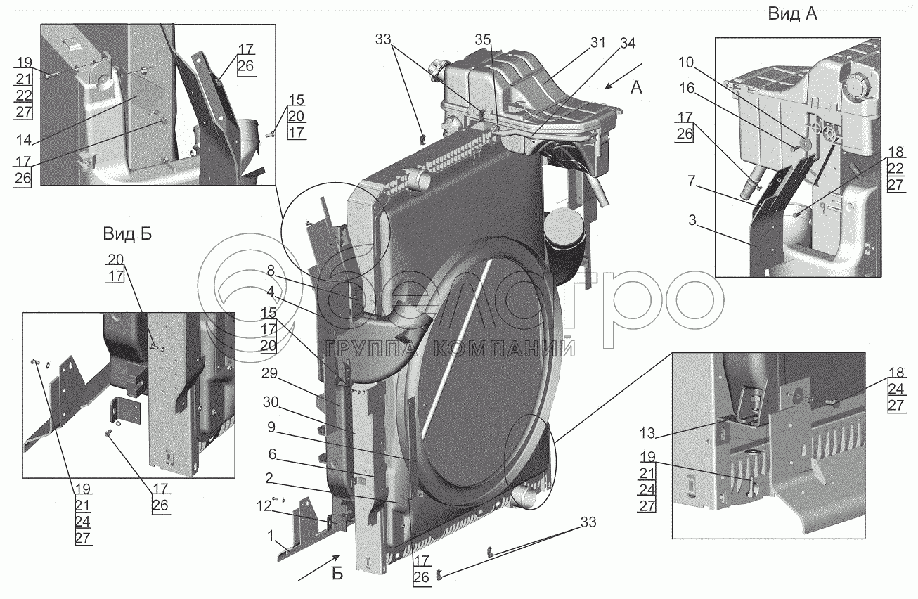 Каталог запасных частей к технике: МАЗ-643018. Радиатор с кожухом 544019-1301009