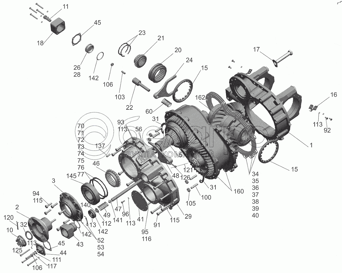 Каталог запасных частей к технике: МАЗ-643018. Редуктор среднего моста