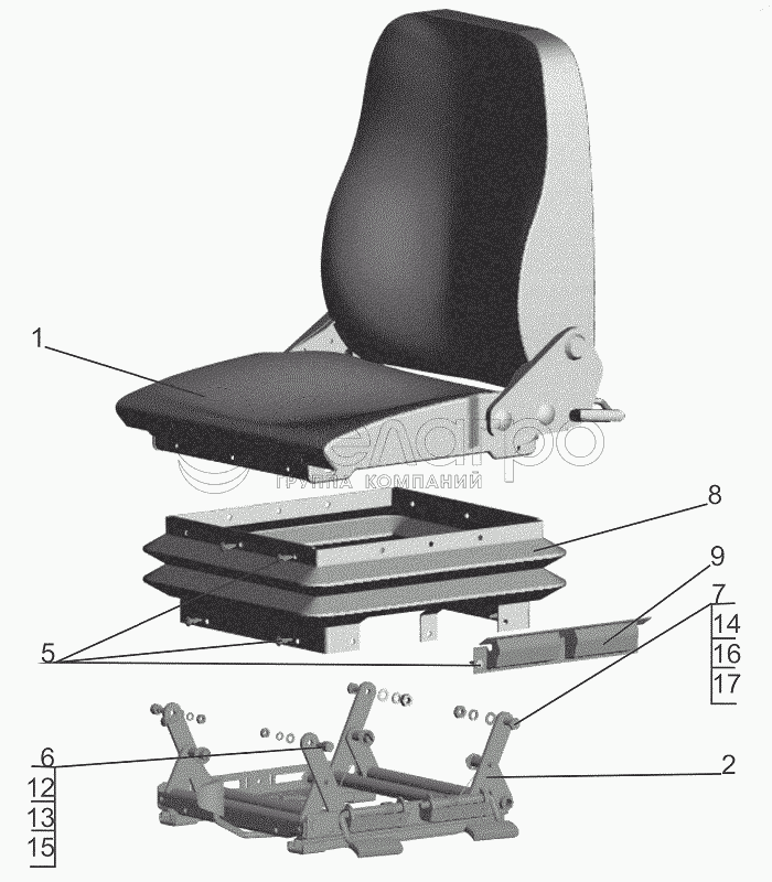 Каталог запасных частей к технике: МАЗ-643018. Сиденье водителя 6430-6800010