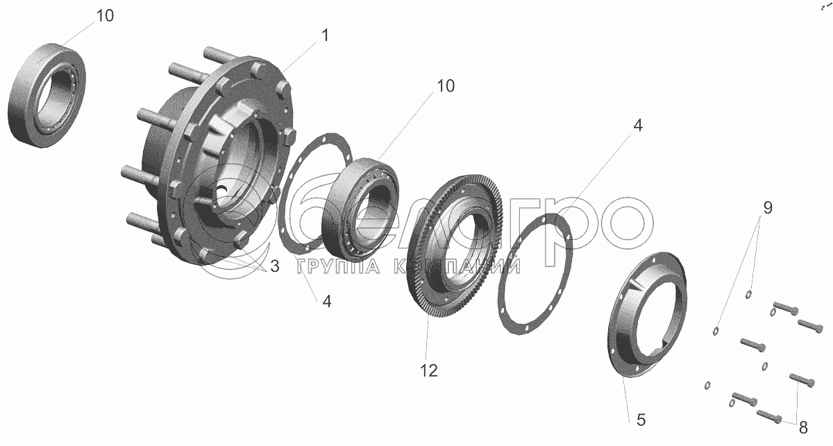 Каталог запасных частей к технике: МАЗ-643018. Ступица с крышкой 543266-3104006-600