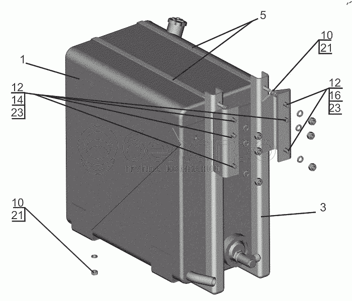 Каталог запасных частей к технике: МАЗ-643018. Установка масляного бака 5440Е9-8600034-000