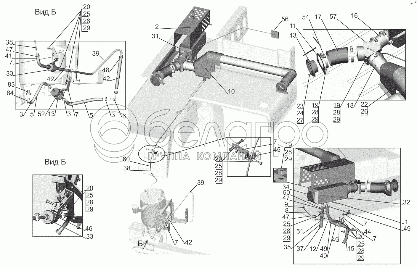 Каталог запасных частей к технике: МАЗ-643018. Установка независимого воздушного отопителя 6430-8100002