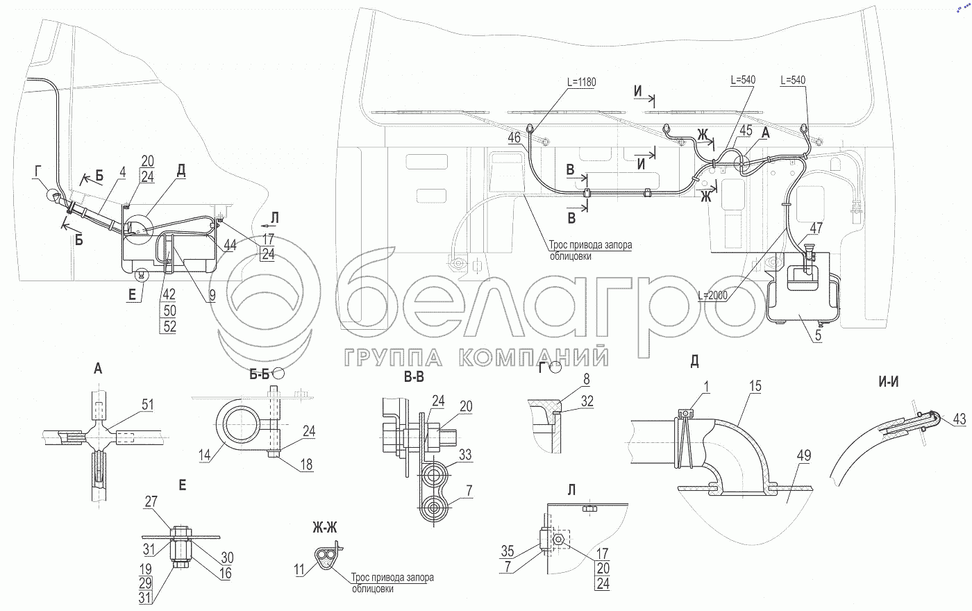 Каталог запасных частей к технике: МАЗ-643018. Установка омывателя 6430-5200008