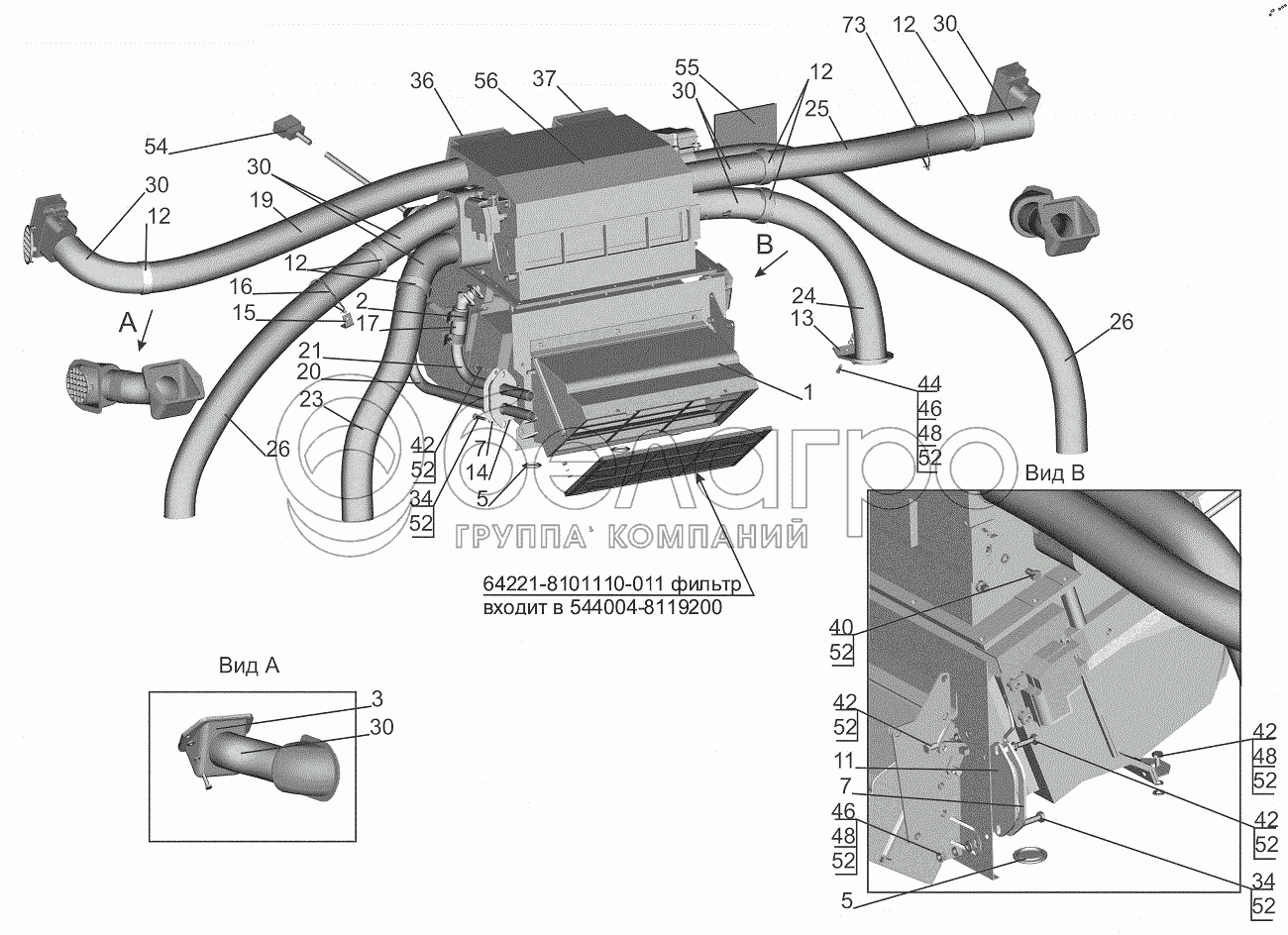 Каталог запасных частей к технике: МАЗ-643018. Установка отопителя 631019-8100001