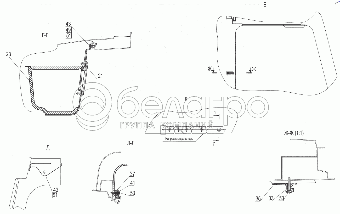 Каталог запасных частей к технике: МАЗ-643018. Установка полки, штор 5440-8200034
