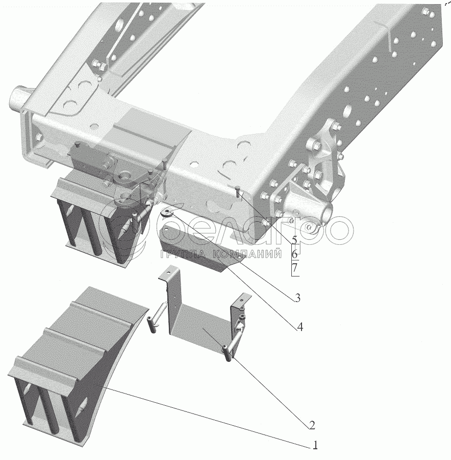 Каталог запасных частей к технике: МАЗ-643018. Установка противооткатных упоров 643018-3900037