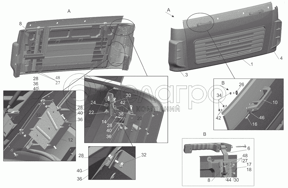 Каталог запасных частей к технике: МАЗ-643018. Установка щитков 6431-8400014-000