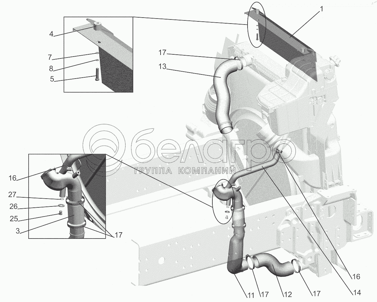 Каталог запасных частей к технике: МАЗ-643018. Установка системы охлаждения 544019-1300005-010
