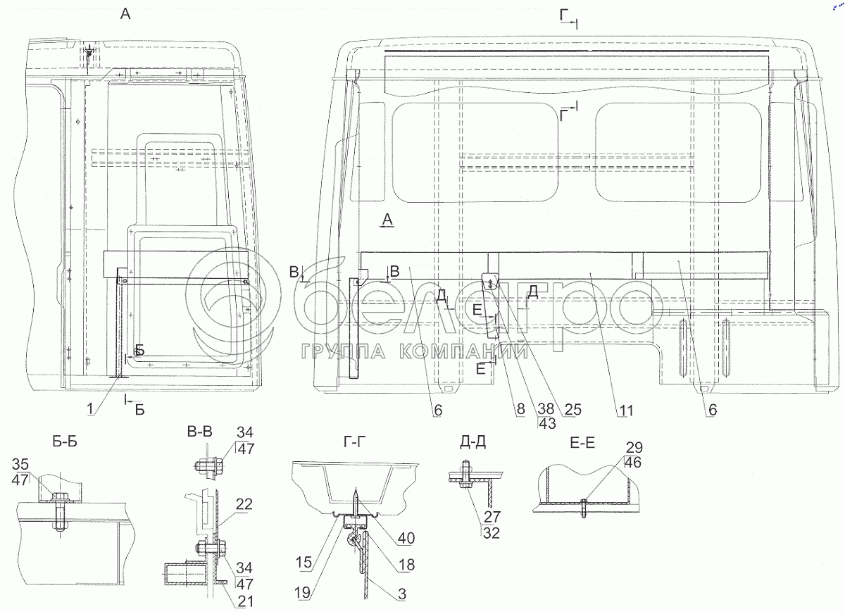 Каталог запасных частей к технике: МАЗ-643018. Установка спальных мест 5440-8200010