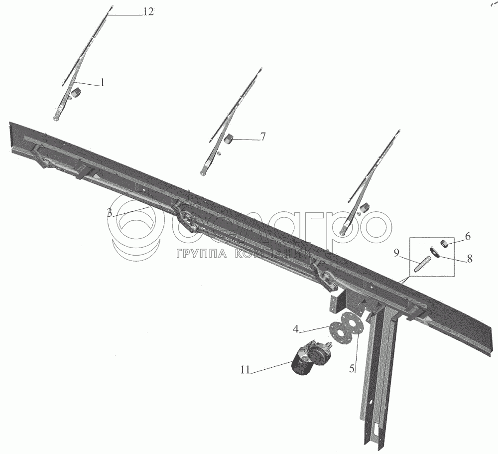 Каталог запасных частей к технике: МАЗ-643018. Установка стеклоочистителя 6430-3700041-001