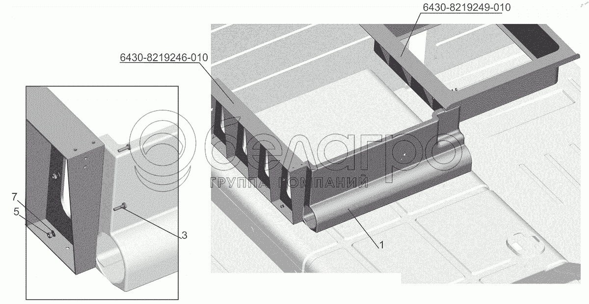 Каталог запасных частей к технике: МАЗ-643018. Установка стенки 6430-8200041