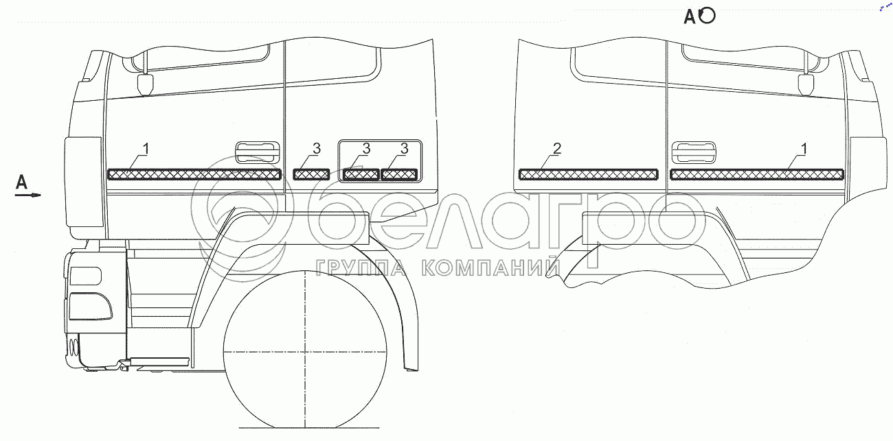 Каталог запасных частей к технике: МАЗ-643018. Установка светоотражающей маркировки 6430-8200002
