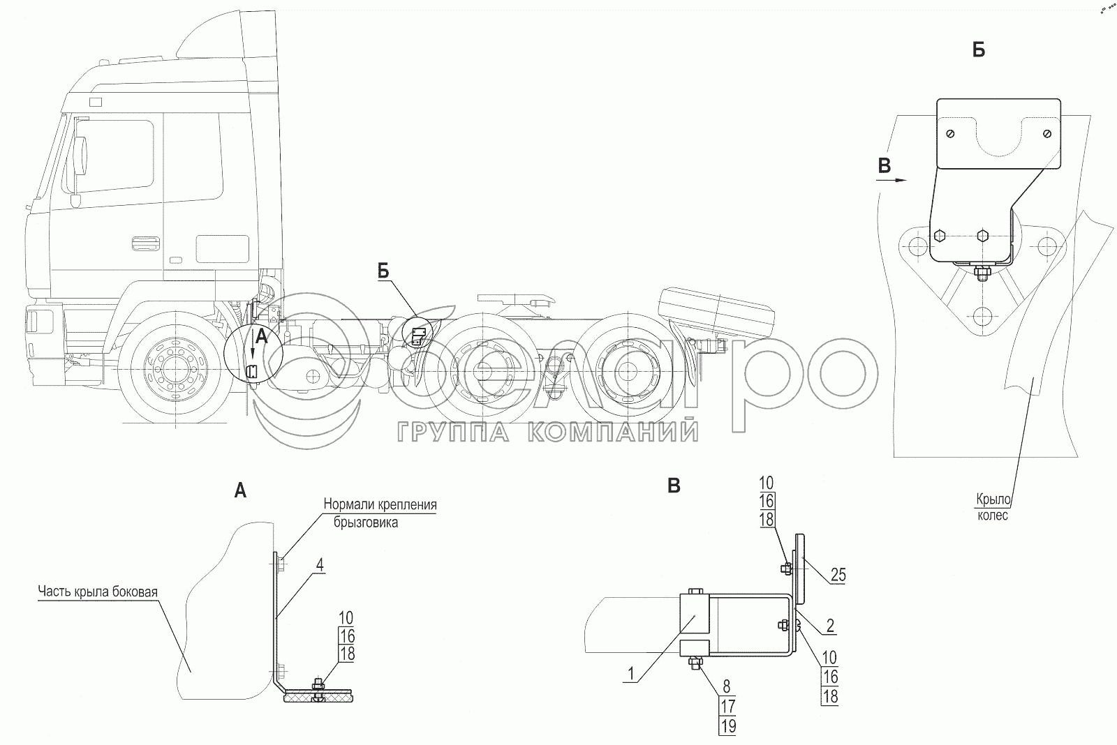 Каталог запасных частей к технике: МАЗ-643018. Установка световозвращателей 643008-3700079