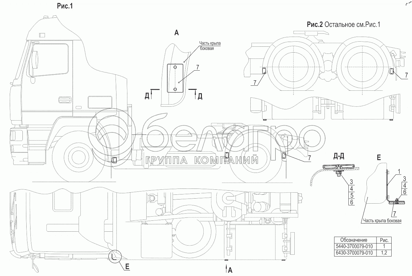 Каталог запасных частей к технике: МАЗ-643018. Установка световозвращателей 6430-3700079-010
