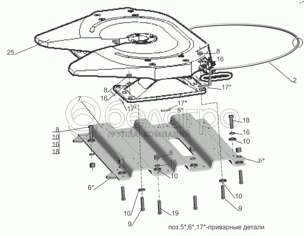 Каталог запасных частей к технике: МАЗ-643018. Установка устройства седельного